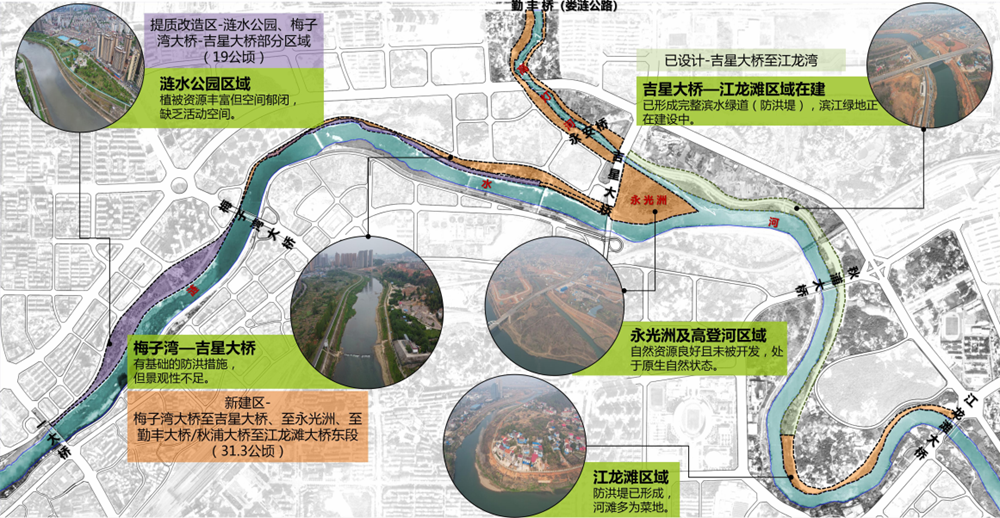 漣水北岸項目治理岸線長8.45km,生態(tài)環(huán)境修復及整治面積81萬㎡,2023 年,項目區(qū)域?qū)⑿略鰸i水北岸濱水風光帶8.45km,新增濱江綠帶約 1214畝,生態(tài)植被修復 405000㎡,生態(tài)濕地125550㎡,周邊區(qū)域綠化40500㎡。